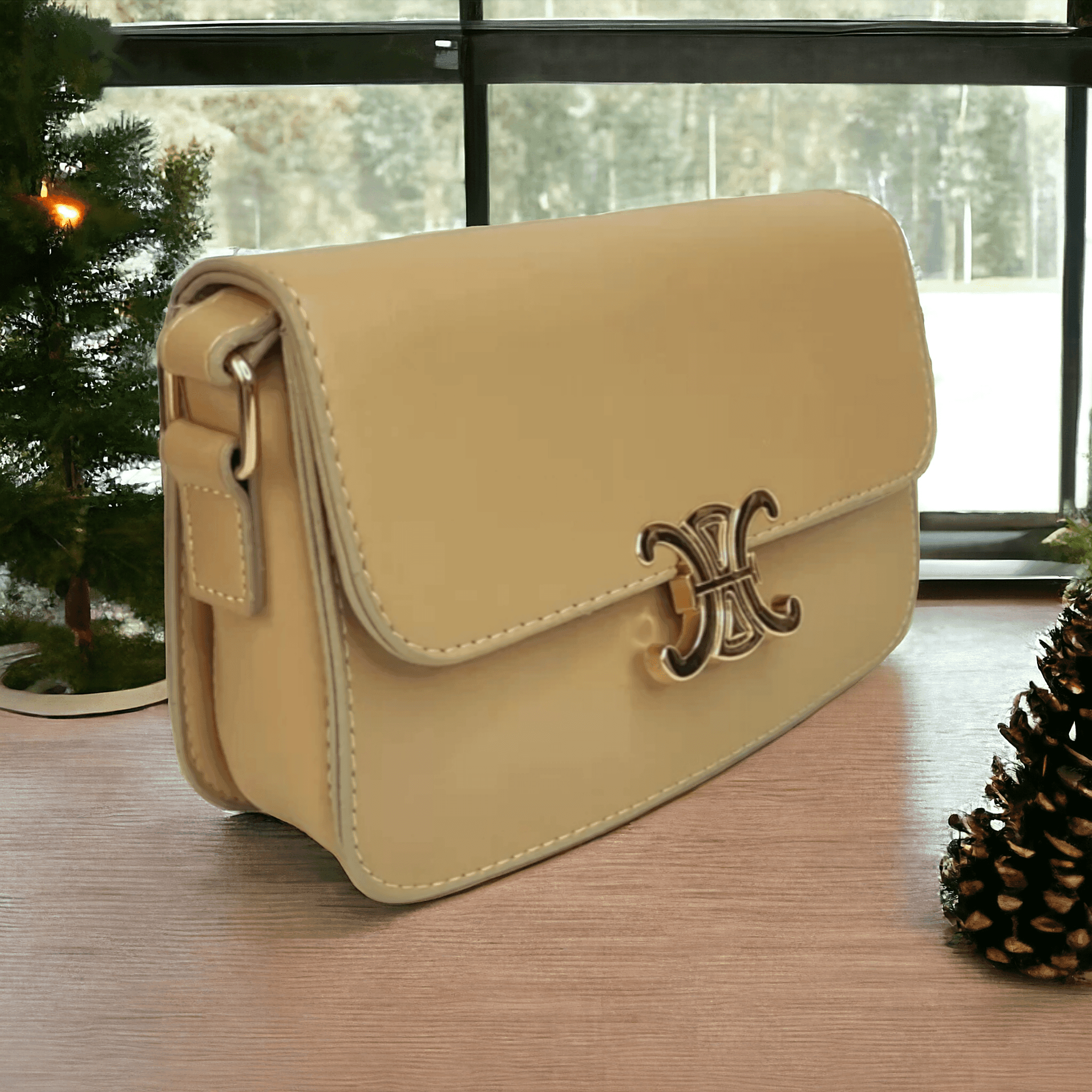 - Gold Toka Detaylı Çapraz Askılı Omuz Çantası